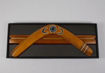 Gift set Ethno Banana Tjukurrpa boomerang with stand in a special box