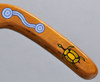 Hand painted ethno decoration shows a Eastern long-necked turtle (Chelodina longicollis). This is a very common species of turtle occurring in the eastern part of Australia. Of course, the turtle is one of the dishes of traditional Aboriginal cuisine. It is often found on the rock paintings. On this boomerang we have painted a turtle crawling towards two water reservoirs connected by a river or stream.