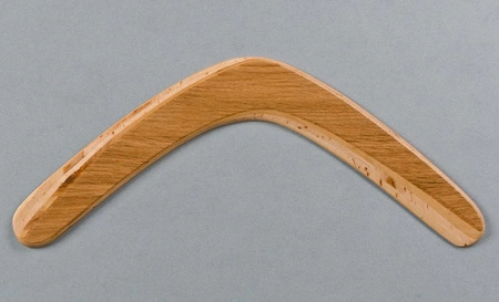 Bumerang jest ręcznie robiony, okleinowany drewnem dębowym, lakierowany bezbarwnie.
